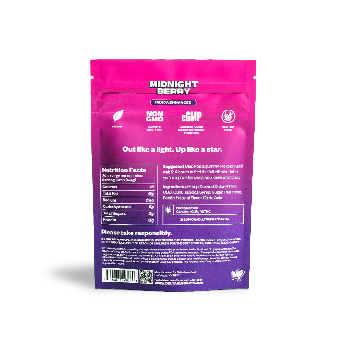 - Midnight Berry: Deep, full-body relaxation that drifts into restful sleep. Indica.